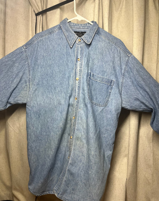 Vintage 1995 Looney Tunes Warner Bros Studio Store Denim Button Down Shirt Size L