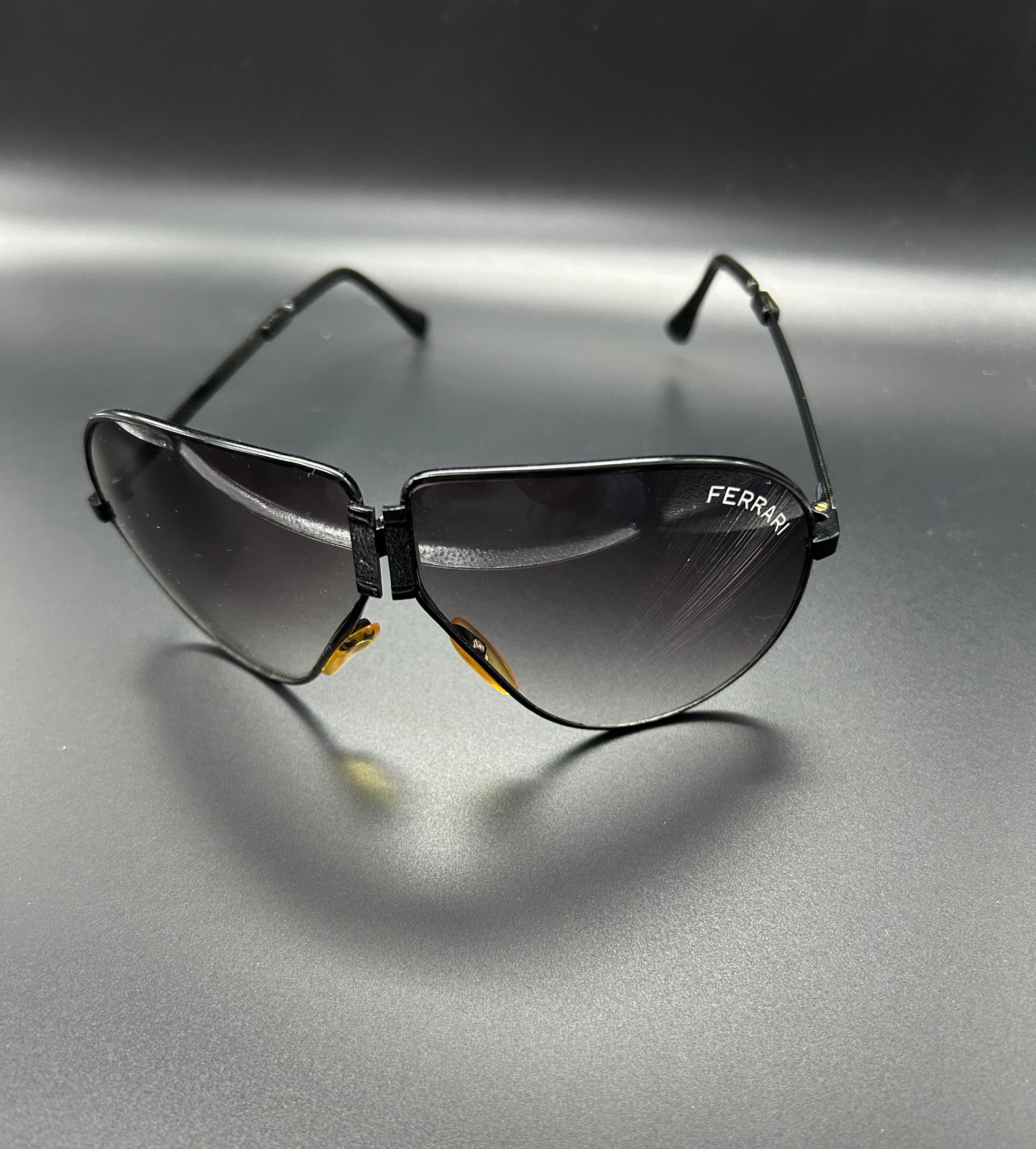 Crafted for the sophisticated collector, these vintage FERRARI aviator style sunglasses offer a unique and stylish addition to any eyewear collection. Made with precision and quality, they come with an original black zip case for proper storage and protection. Elevate your look with these rare and foldable sunglasses.